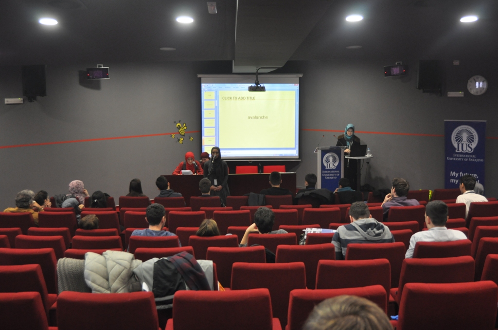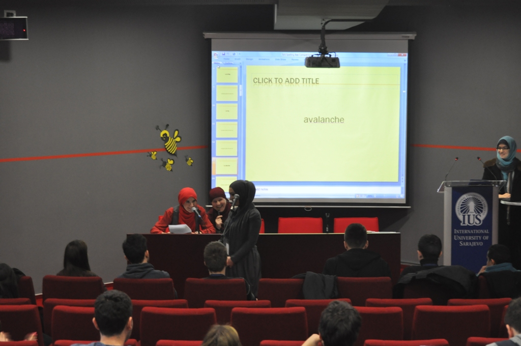 The top three contestants were Emina Rastoder, Amina Adilović and Amar Tirić. The winner of the 1st IUS Spelling Bee competition was Emina Rastoder, a student of English Language and Literature program. Amina Adilović, also a student of English Language and Literature program, won the second place, while Amar Tirić won the third place. The three finalists received additional prizes. Congratulations to the winner and the other two finalists, but also to all the participants who have contributed to promoting English language learning and competitive spirit among IUS students.
