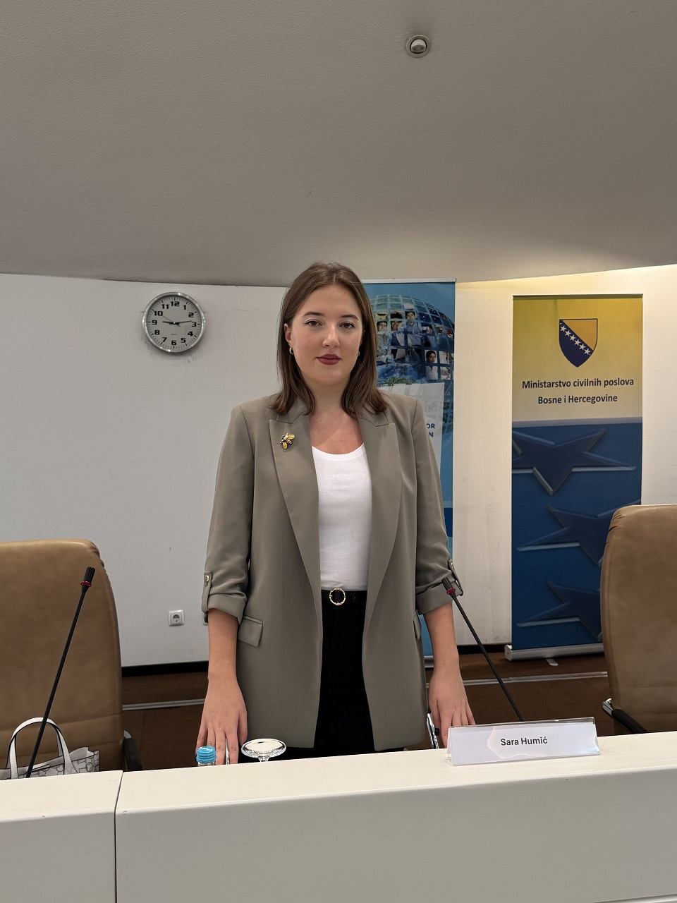Two enthusiastic students from IUS, Sara Humić and Kenan Junuzović, participated in the event to share their experiences as Erasmus+ volunteers. Kenan, an Architecture student, and Sara, a Psychology student, spoke about how the Erasmus+ program significantly influenced their personal and professional development, enabling them to make meaningful contributions to their community. Their inspiring stories demonstrated the transformative potential of Erasmus+ for young individuals, motivating attendees to pursue similar opportunities.