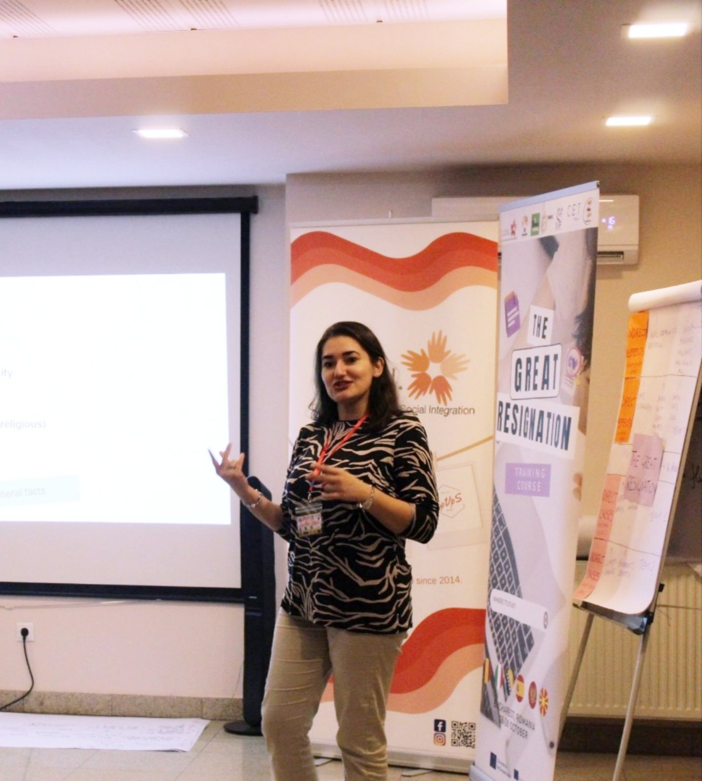 The education aimed at soft skills improvement, practical application exercises, visits to a national youth center in Bucharest, awareness raising regarding current trends and practice, discussions with experts, as well as the inclusion of digital tools as innovative ways to tackle the "great resignation" effects.
