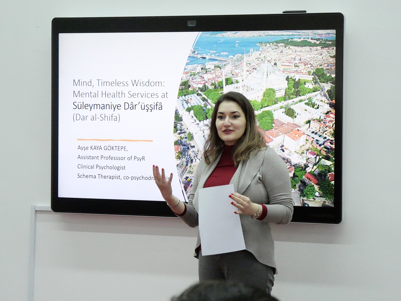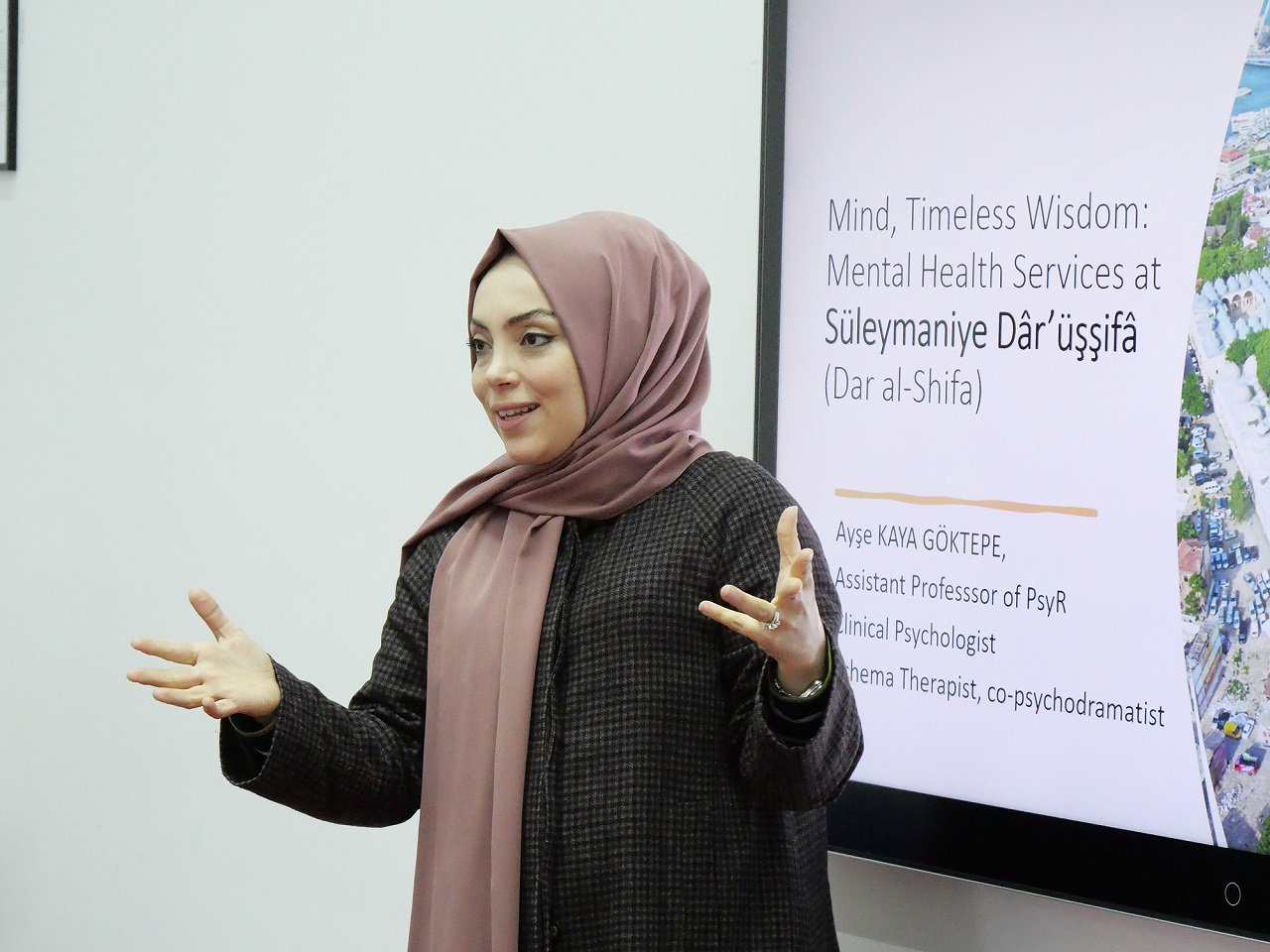 The first lecture, titled "Mind and Healing: The Evolution of Psychology in the Ottoman Empire – The Case of Süleymaniye Dārüşşifa (House of Healing)," was delivered by Asst. Prof. Dr. Ayşe Kaya Göktepe. A clinical psychologist and specialist in the psychology of religion, Dr. Göktepe offered an enriching perspective on mental health practices in the Ottoman Empire, focusing on the Süleymaniye Dārüşşifa—one of the most advanced healing institutions of its time. Her lecture highlighted the integration of music therapy, environmental design, spiritual care, and humoral theory in holistic treatment approaches, illustrating the profound intellectual and medical legacy of the Ottoman era.